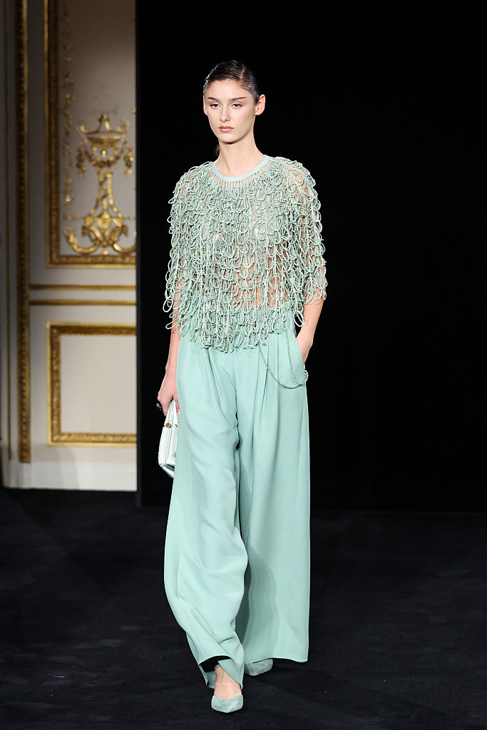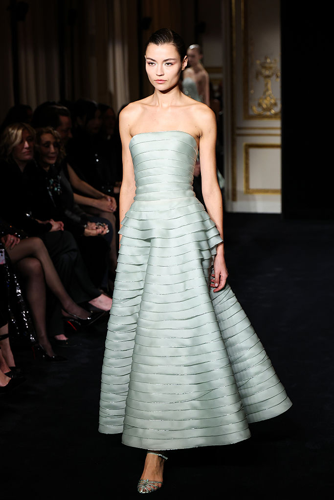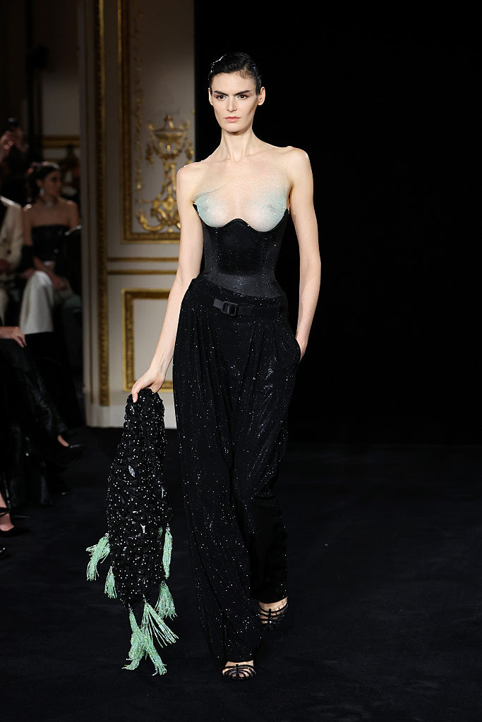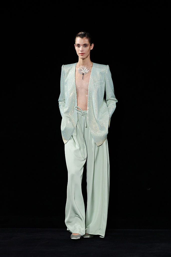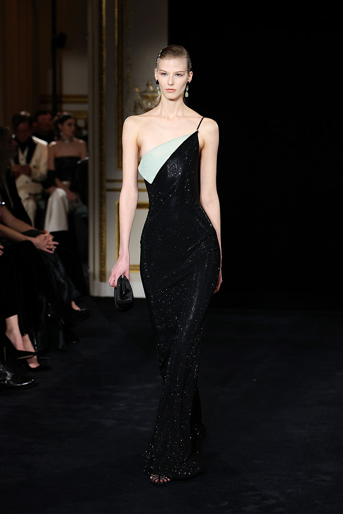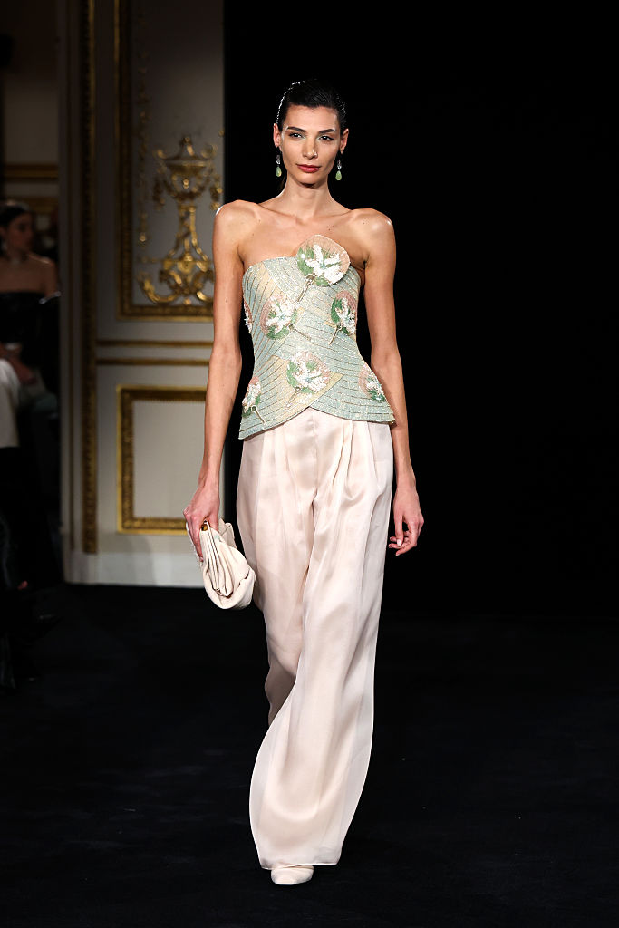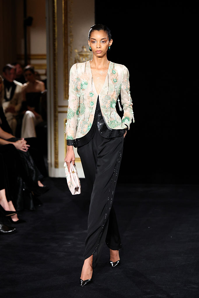 PARIS, FRANCE – JANUARY 27: (EDITORIAL USE ONLY – For Non-Editorial use please seek approval from Fashion House) A model walks the runway during the Giorgio Armani Privé Haute Couture Week Spring/Summer 2026 show as part of Paris Fashion Week on January 27, 2026 in Paris, France. (Photo by Aurore Marechal/Getty Images)