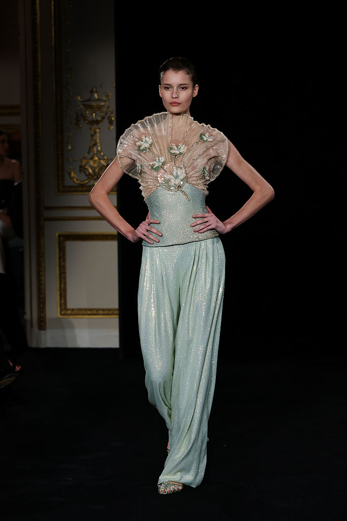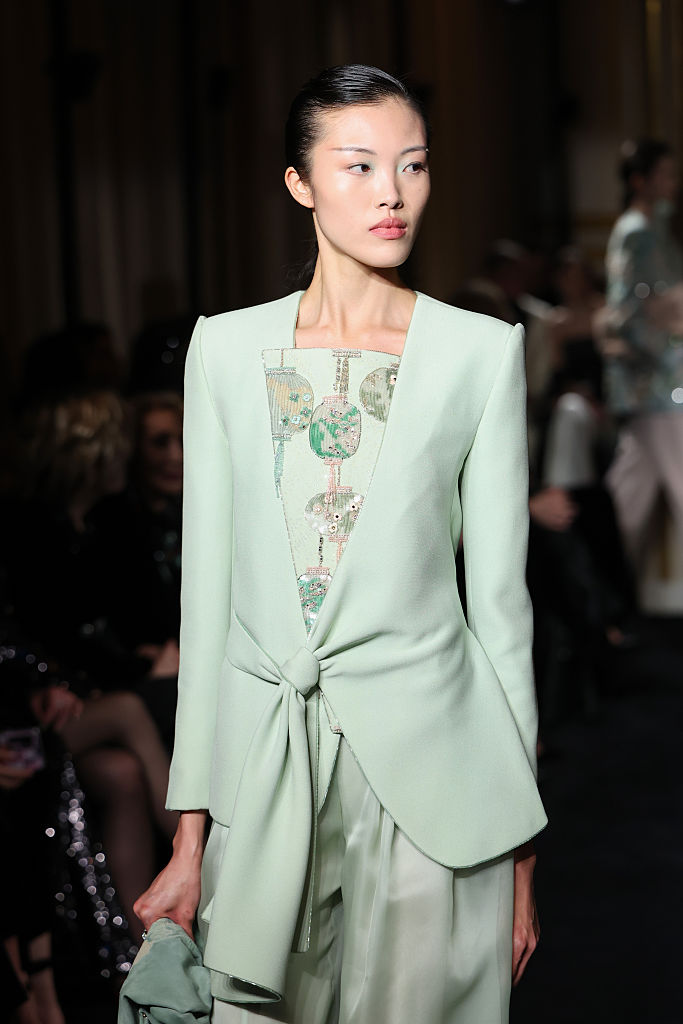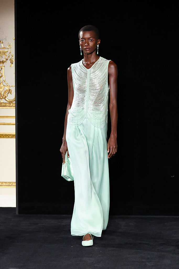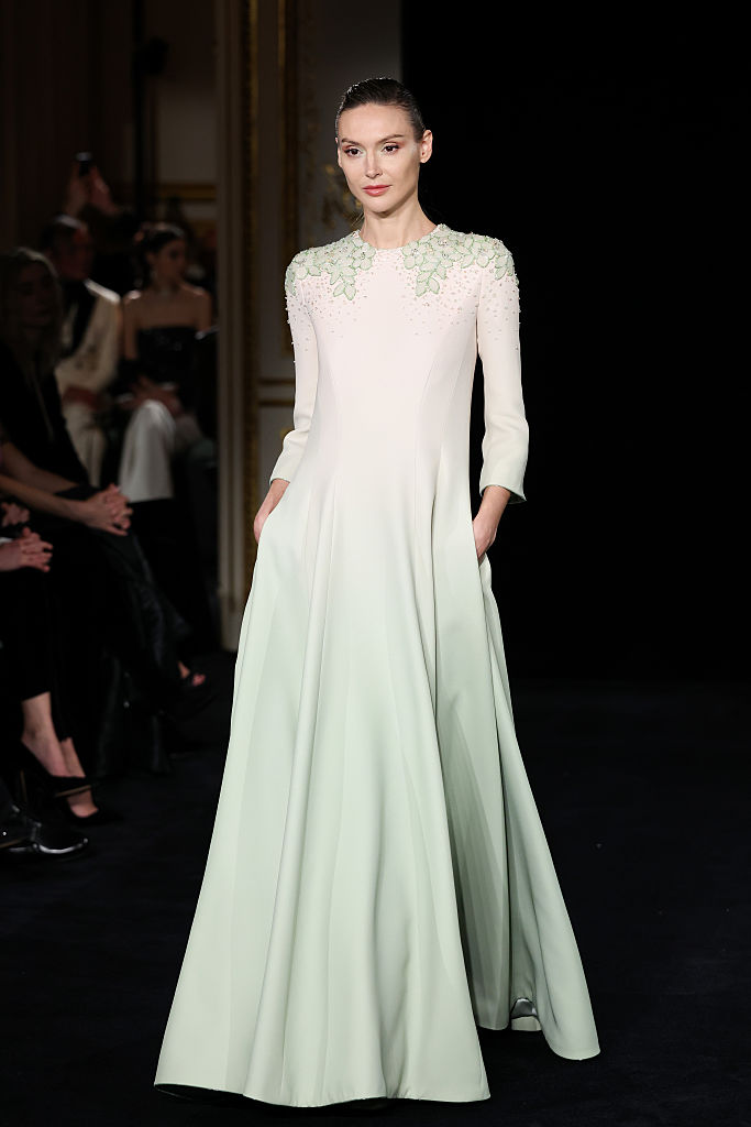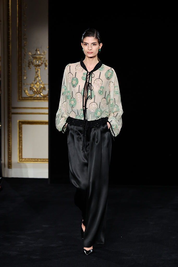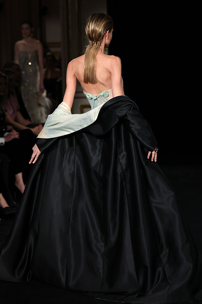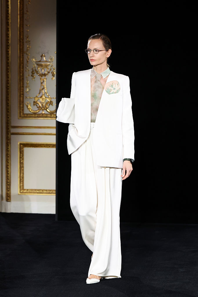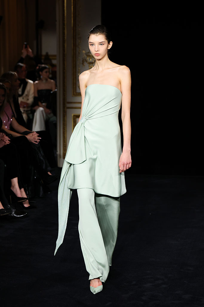 PARIS, FRANCE – JANUARY 27: (EDITORIAL USE ONLY – For Non-Editorial use please seek approval from Fashion House) A model walks the runway during the Giorgio Armani Privé Haute Couture Week Spring/Summer 2026 show as part of Paris Fashion Week on January 27, 2026 in Paris, France. (Photo by Aurore Marechal/Getty Images)