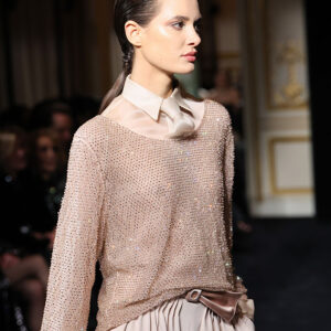 Емоционалният финал на ревюто дойде с появата на булчинска рокля, представена като специален жест на почит към наследството на марката. Под звуците на класическа музика Силвана Армани излезе за финален поклон, посрещната с бурни аплодисменти – знак, че Armani Privé уверено продължава напред, без да губи духа на своята легенда.