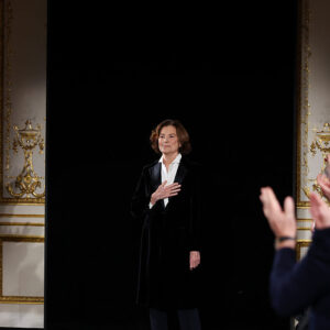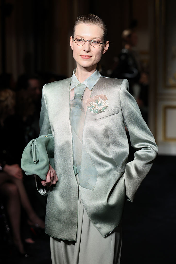 PARIS, FRANCE – JANUARY 27: (EDITORIAL USE ONLY – For Non-Editorial use please seek approval from Fashion House) Designer Silvana Armani acknowledges the audience at the end of the Giorgio Armani Privé Haute Couture Week Spring/Summer 2026 show as part of Paris Fashion Week on January 27, 2026 in Paris, France. (Photo by Aurore Marechal/Getty Images)
