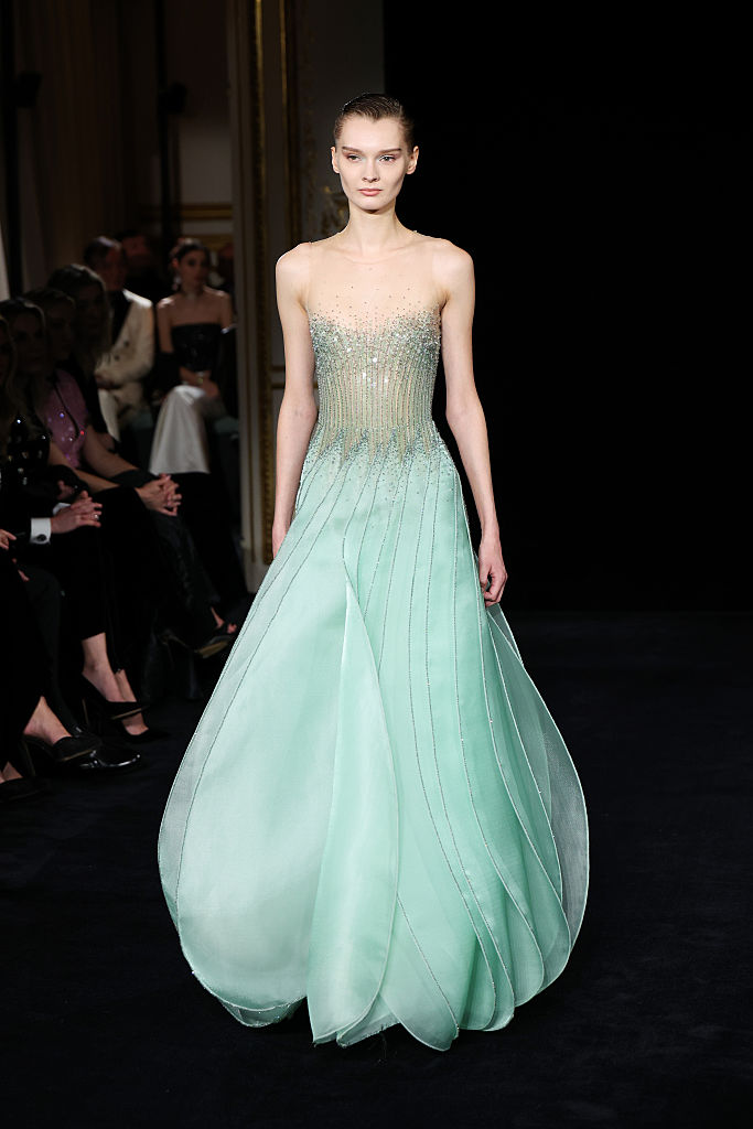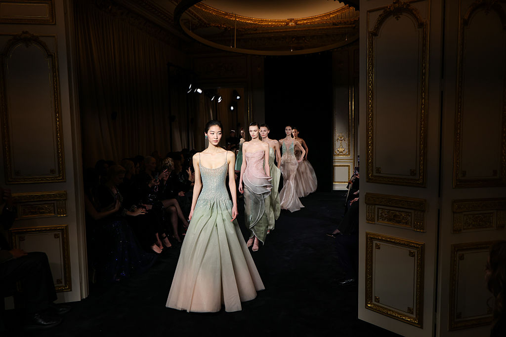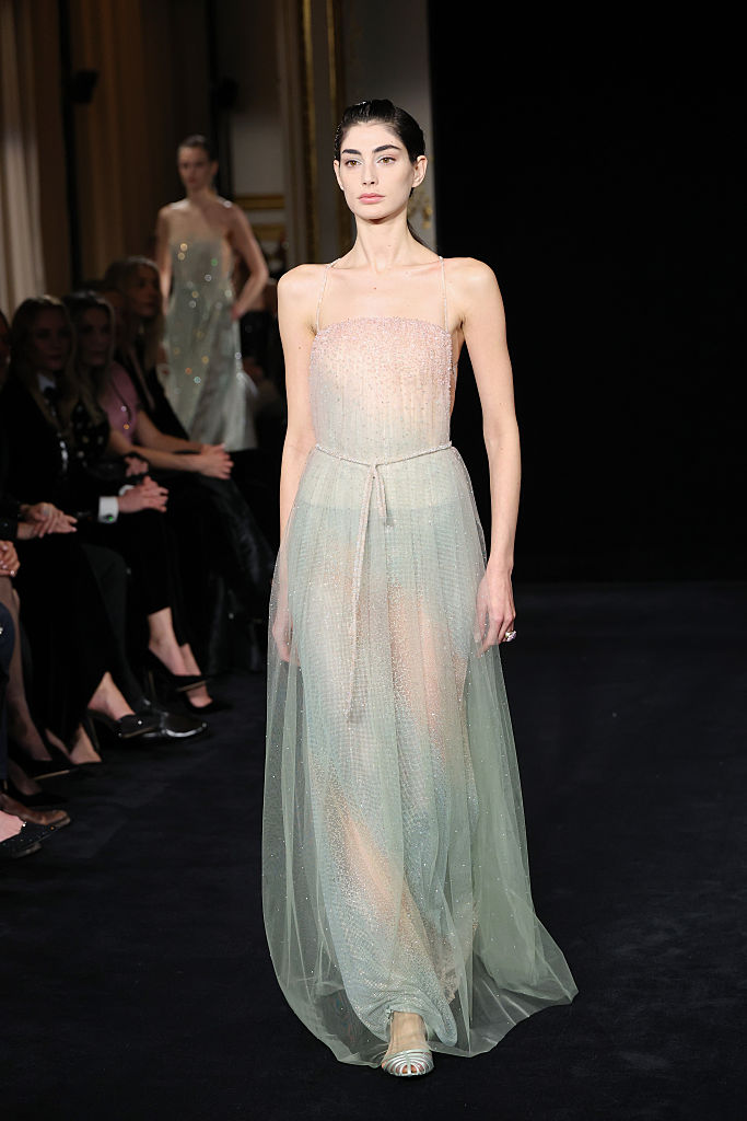 PARIS, FRANCE – JANUARY 27: (EDITORIAL USE ONLY – For Non-Editorial use please seek approval from Fashion House) Models walk the runway during the Giorgio Armani Privé Haute Couture Week Spring/Summer 2026 show as part of Paris Fashion Week on January 27, 2026 in Paris, France. (Photo by Aurore Marechal/Getty Images)