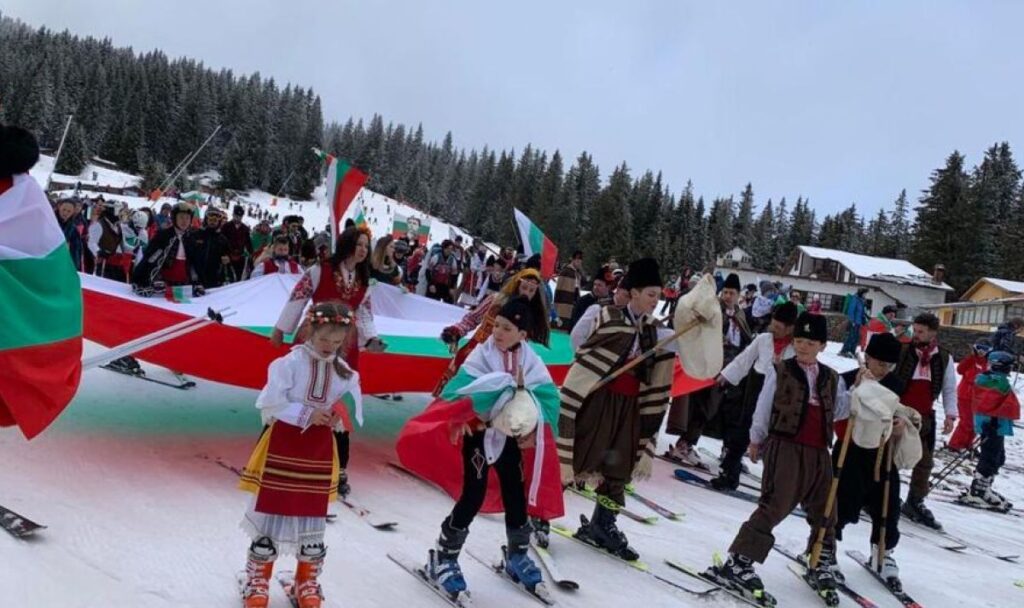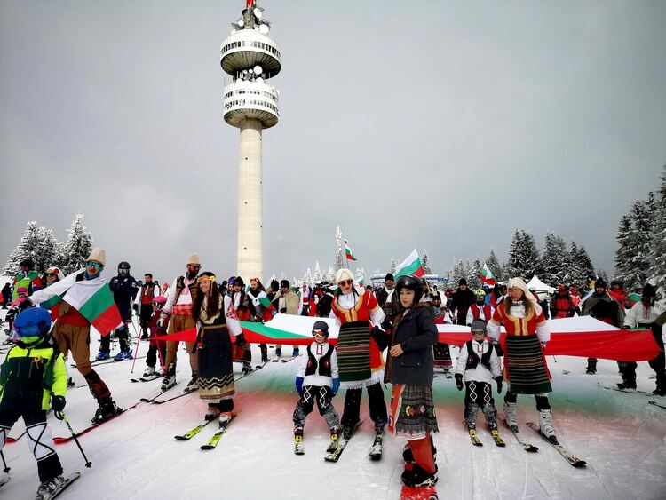 Стотици българи се спуснаха със ски в народни носии и знамена за Трети март в Пампорово