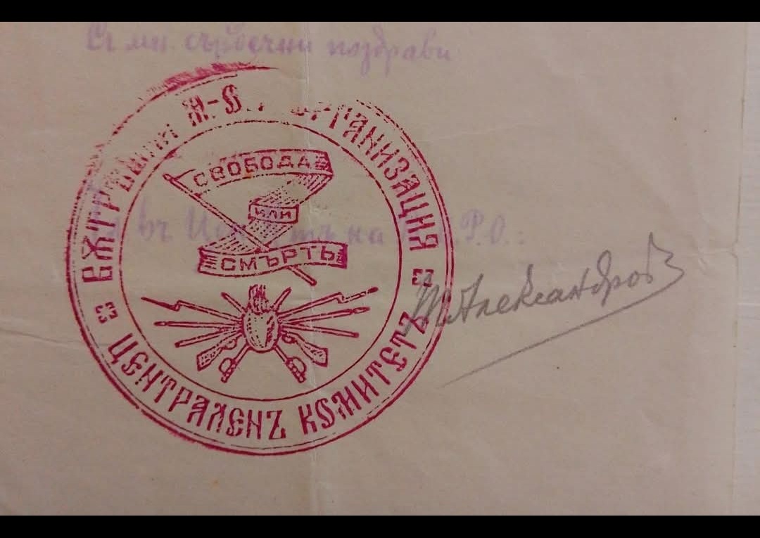 „Част от писмо до задграничното представителство на ВМРО и Илинденската организация от 1923 г. Ясно се чете подписът на Тодор Александров. Документът се съхранява във фонда на отдел „Нова и най-нова история“ на Регионален исторически музей – Благоевград.“