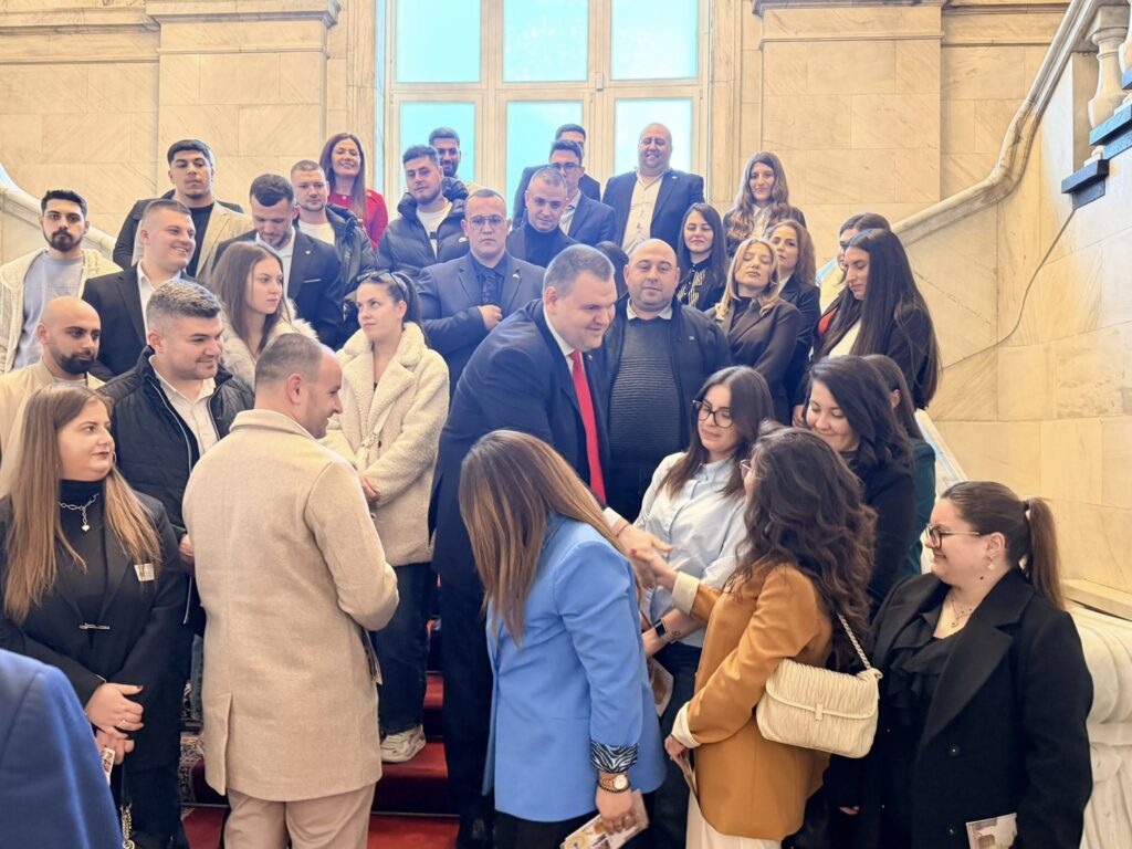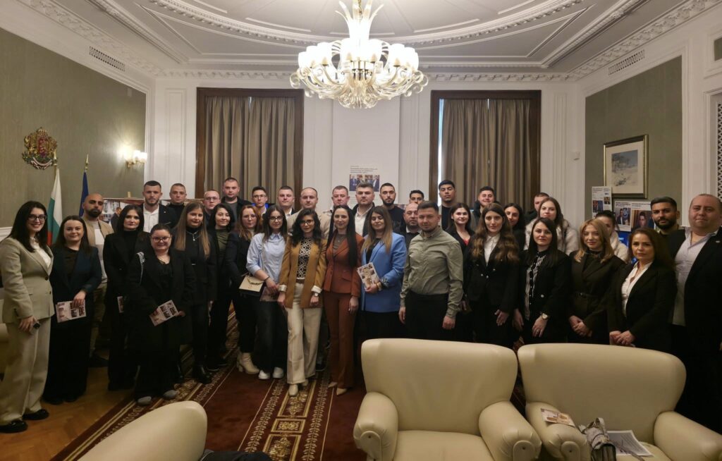 Лидерът на ДПС и ПГ на ДПС-НОВО НАЧАЛО Делян Пеевски се срещна с голяма група младежи от област Шумен, които посетиха Народното събрание и Музея на Сглобката, разположен в кабинет 222А.