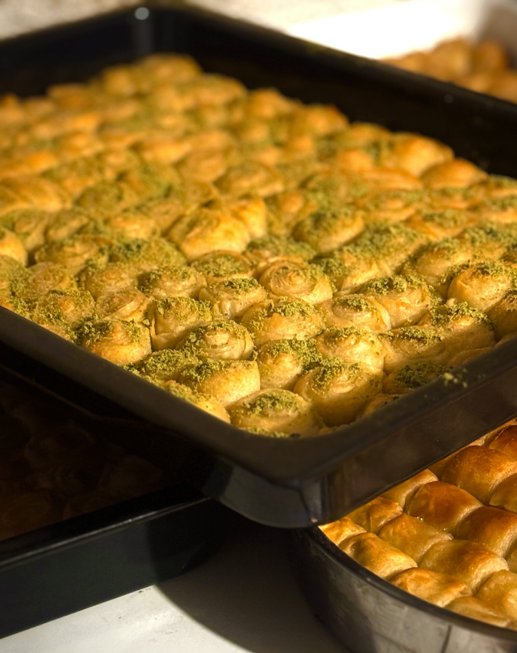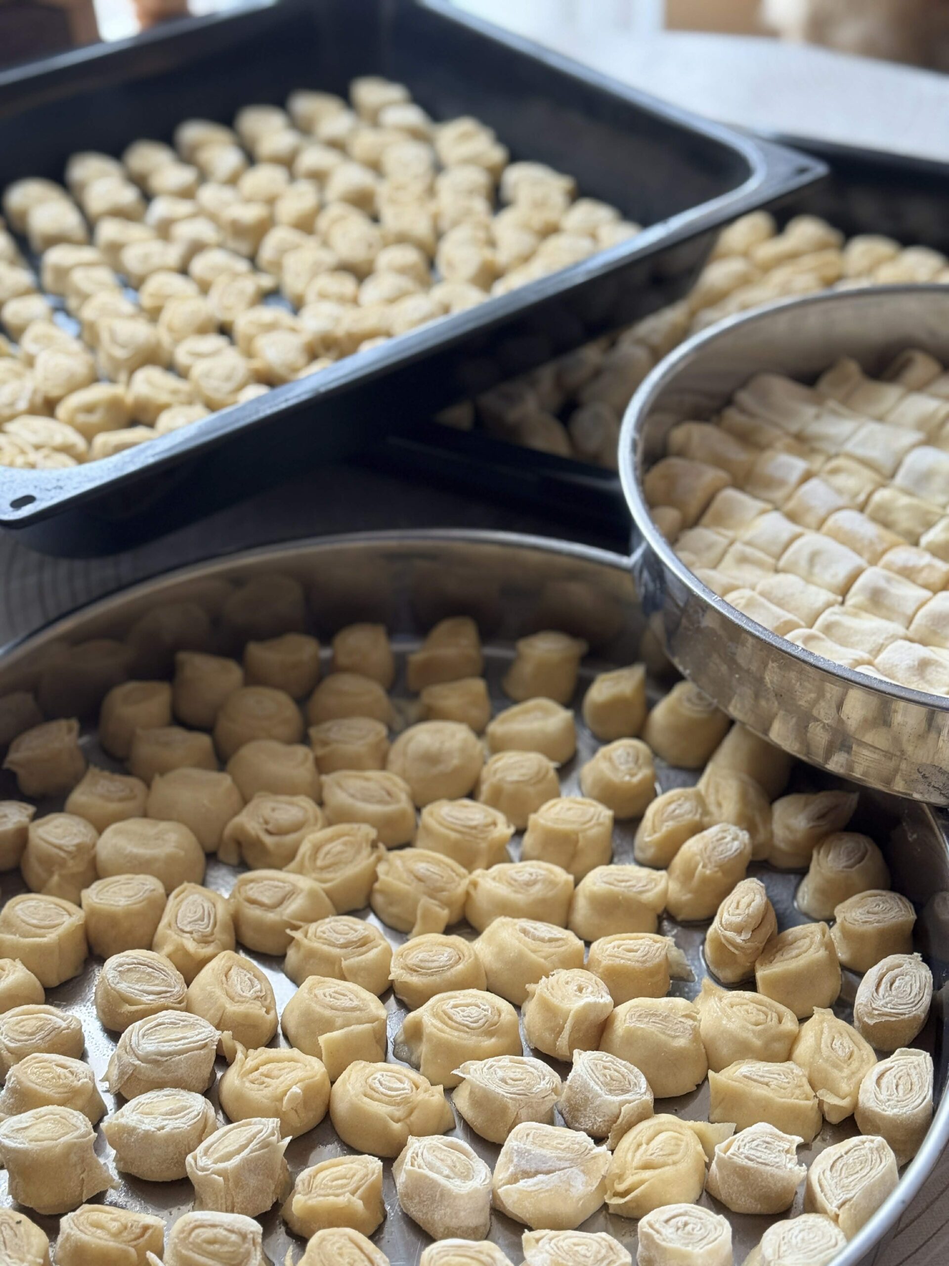 Нашето пътуване ни отведе отново в приказната Кальорова вила – истински пазител на традициите. Тук, под вещото ръководство на сръчните брезничанки, станахме свидетели на магията на точенето на корите. Пулсът на подготовката се усещаше в ритмичното движение на точилките върху дървените маси. Ръцете на майсторките сякаш танцуваха върху тестото, превръщайки го в тънки, почти прозрачни воали. Погледите им бяха концентрирани, но лицата им излъчваха благост и удовлетворение от споделения труд.В центъра на вниманието бяха ароматни тави, пълни с обещание за сладост и уют.