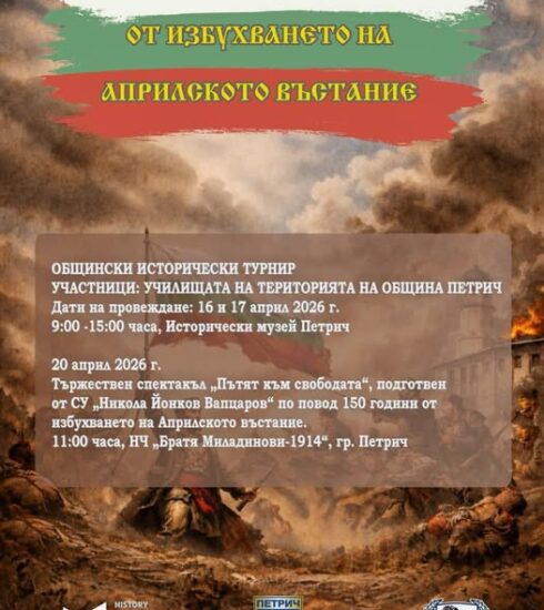 Общински исторически турнир „Изборът на свободата“ ще се проведе в Петрич по повод 150 години от избухването на Априлското...