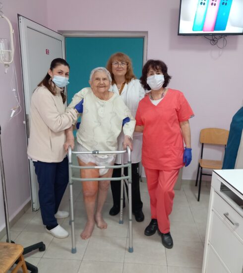 В отделението по ортопедия на МБАЛ Благоевград 93-годишна пациентка направи първите си крачки още на третия ден след операция...