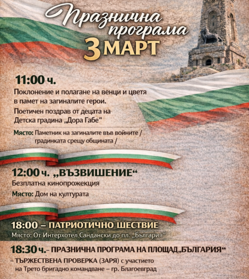 С тържествена и богата програма Община Сандански ще отбележи Националния празник на Република България-3 март