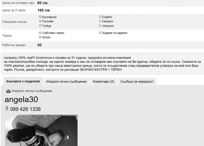 Ние от вестник „Градът“ сме изключително притеснени от една тенденция, около която работи цялата ни медийна група. Тенденцията на „скритата и явна проституция“ в областта като цяло. Не един път сме публикували скандални факти, свързани с това, че жени тайно продават телата си на гърци или платежоспособни неврокопчани, но пред обществото се правят на невинни и едва ли не девици. Тази тенденция освен че се засилва с всеки един случай, гръмнал от нашите страници, започва и да мутира и към реална проституция. Мониторингът, който правим в интернет, свързан с тази тема, показва, че се появяват все по реални обяви на млади жени около 25-35 години, които съвсем явно продават телата си за пари. Повечето от тях са от селата около град Гоце Делчев, но има и такива, които са от града. Публикуваме факсимиле от най-„прясната“ такава обява и настояваме конкретните институции да се вземат в ръце и да проверят, аджеба, какво се случва. Ние определено не сме съгласни с оправданието „това е личен избор“, напротив – това е престъпление. Ние от вестник „Градът“ с години алармираме, че на определени места градът ни се превръща в гнездо на разврата „благодарение“ именно на дами от селата, които идват в града и искат да изкарват пари по лесния начин, също така алармираме, че в този град живеем ние и нашите деца. В гнездо на разврата ли искаме те да живеят? Време е за реална намеса и ние от градския вестник очакваме крути мерки и адекватни реакции…