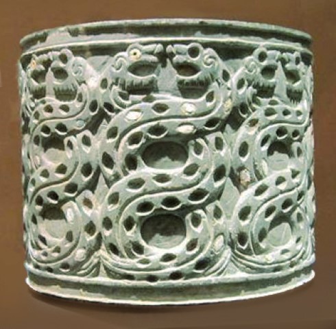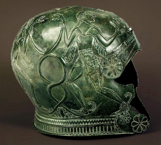 Притежание на същия музей е един прекрасен шлем от Крит, на който са изобразени двете страни на конфликт, насъскали една срещу друга свистящи, преплетени змии. Тук разпознаваме змията в нейния общочовешки смисъл.