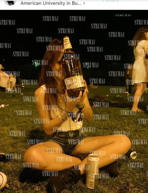 Появиха се потресаващи снимки на студентите в Американския университет в България (АУБ). Фотосите дават информация за начина на живот на студентите, дошли в Благоевград от всички краища на света, за да завършат престижното учебно заведение. Но и далеч от род и родина, идвайки в Благоевград младежите свалят задръжки и се превръщат в опасни гуляйджии, пише Struma.com. С бира, цигари и странни хапчета позира русокоса девойка, друга пък целува шишето с бира, „като икона“, трета бърка пунш в леген в студентската баня, с надпис „Откакто съм в града е перманентен купон“.