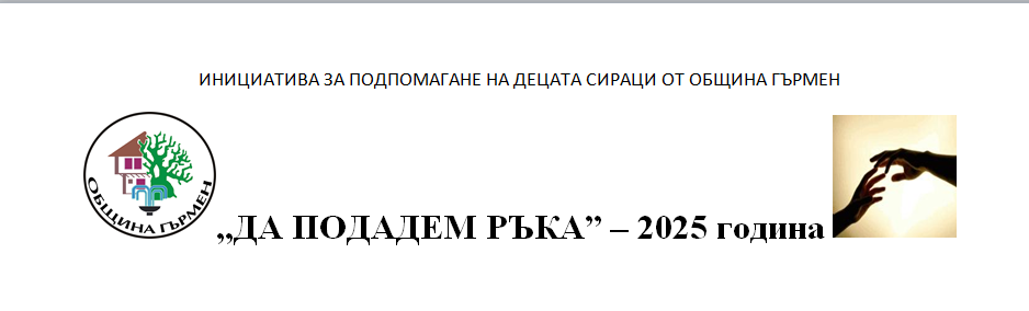 Община Гърмен за поредна година отправя призив към всички жители и приятели на региона да се включат в благотворителната инициатива „Да подадем ръка“ за подпомагане на децата сираци от 0 до 18 години. Инициативата, която се провежда с активната подкрепа на местната общност, цели да внесе радост и надежда в живота на най-уязвимите деца от общината.