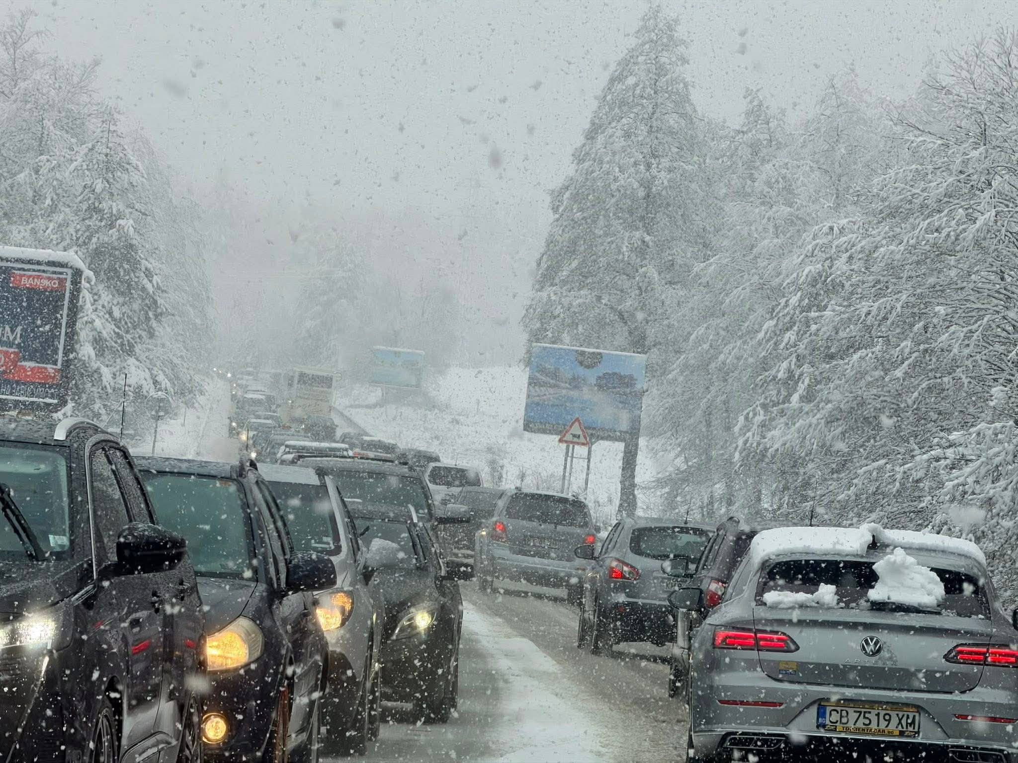 Проход Предел е блокиран. Трафикът е напълно спрян заради тежкотоварен автомобил, тръгнал без задължителните вериги и аварирал на пътното платно. Ситуацията се развива в условия на слабо обработен път, сняг и лед по платното за движение.