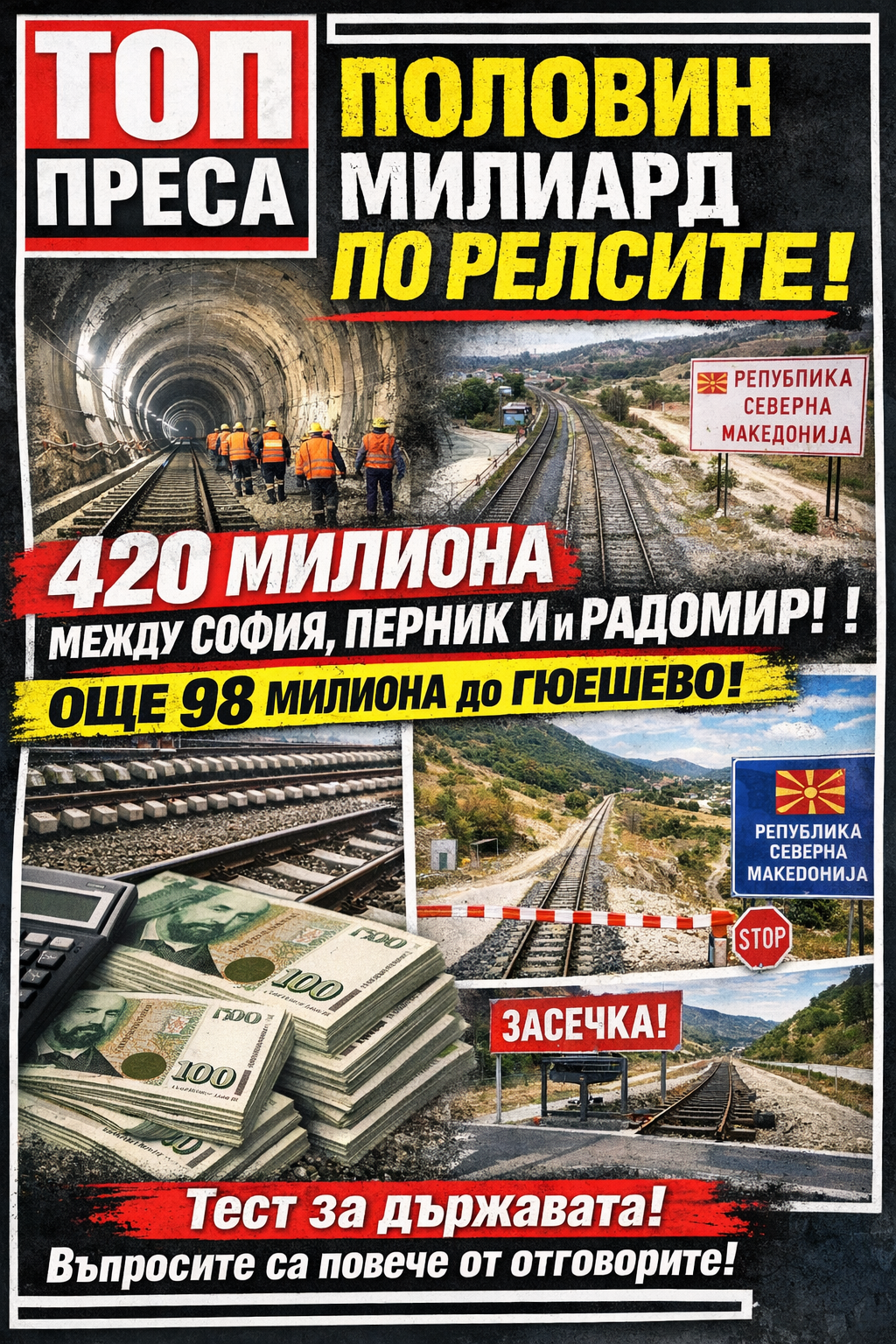 Топ Преса не оспорва нуждата от модернизация на железопътната инфраструктура. Напротив. Тя е закъсняла. Но половин милиард лева не са просто технически проект. Те са обществен договор. И когато цената на километър е рекордна, когато конкуренцията отпада масово, когато сроковете са дълги, а връзката със съседите несигурна, въпросите са задължителни.