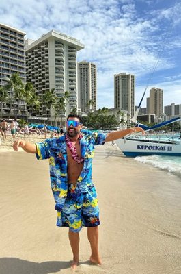 Поп фолк певецът Азис се похвали, че е посрещнал Новата година в Хавай. Изпълнителят сподели кадри от плажа в квартала Уайкики, който е най-популярният на Хонолулу – столицата на Хавайски острови.