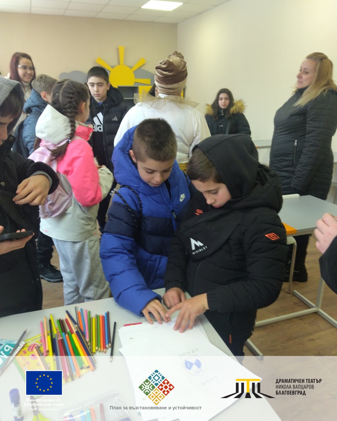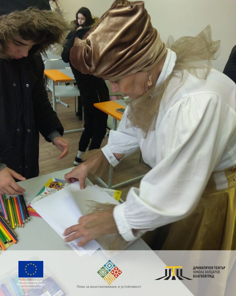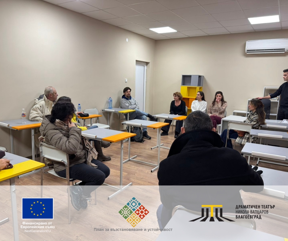 Тази публикация е създадена в рамките на проект ЗА ФИНАНСИРАНЕ ЗА ПРЕДОСТАВЯНЕ НА СРЕДСТВА НА КРАЙНИ ПОЛУЧАТЕЛИ ОТ МЕХАНИЗМА ЗА ВЪЗСТАНОВЯВАНЕ И УСТОЙЧИВОСТ (МВУ/МЕХАНИЗМА) по Компонент 11 „Социално включване“, Инвестиция 6 „Развитие на културните и творчески сектори“, Процедура от Информационна система (ИС) за МВУ Процедура BG-RRP-11.025 „Схема за безвъзмездна помощ „Представяне пред българската публика на съвременни български продукции от сектора на КТИ“, за изпълнение на предложението за изпълнение на инвестиция (Формуляр за кандидатстване, подаден в ИС на МВУ) „Културни мостове в Югозападна България: Достъп и приобщаване чрез театър“ BG-RRP-11.025-0002 (наименование и номер от ИС за МВУ) по процедура BGRRP-11.025., с договор с регистрационен номер: BG-RRP-11.025-0002-C01. Цялата отговорност за съдържанието на публикацията се носи от Драматичен театър „Никола Вапцаров“ – Благоевград и при никакви обстоятелства не може да се счита, че този документ отразява официалното становище на Европейския съюз и Управляващия орган.
