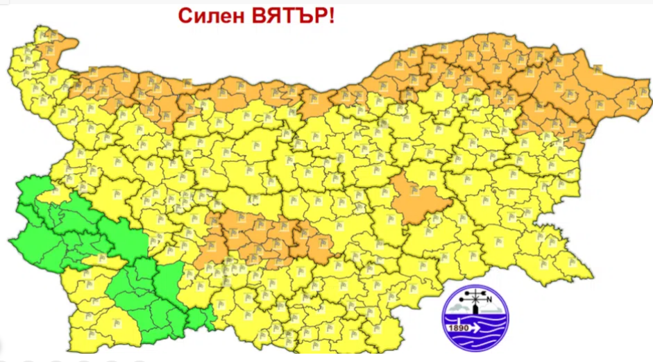 По-сериозното предупрежение е в сила за област Добрич, както и части от Варна, Шумен, Русе, Разград, Пловдив, Стара Загора и Пазарджик, Велико Търново, Плевен, Враца, Монтана и Видин. За останалата част от страната е валиден жълт код, с изключение на малки части от област Кюстендил, София-област, Перник и Благоевград.