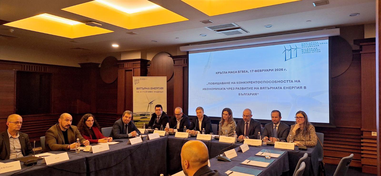 На 17 февруари Българска ветроенергийна асоциация (БГВЕА) проведе кръгла маса на тема „Повишаване на конкурентоспособността на българската икономика чрез развитие на вятърната енергия“.