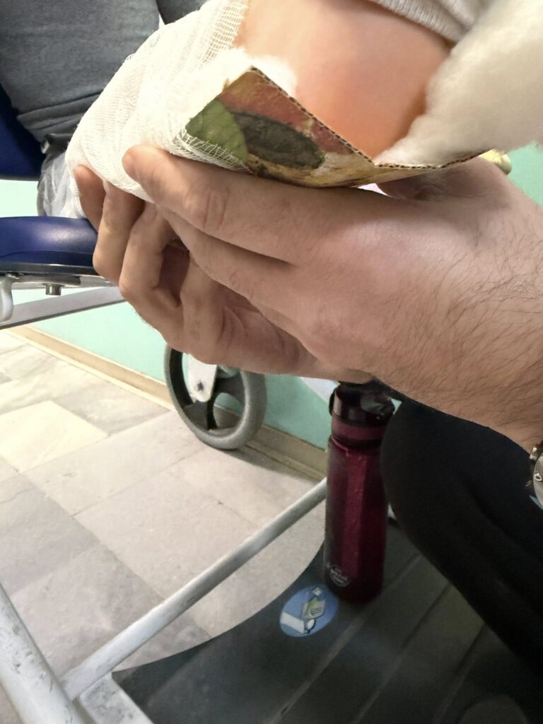 „Аз бях на работа, госпожите ми звънят, че са в Разлог в спешната помощ с опасения, че е със счупен крак. Махнаха бинта отгоре. Като го вдигнаха, се виждаше кутия от пица. Мъжът ми придържаше шината, защото когато тя отпусне крака, картонът се огъваше.“