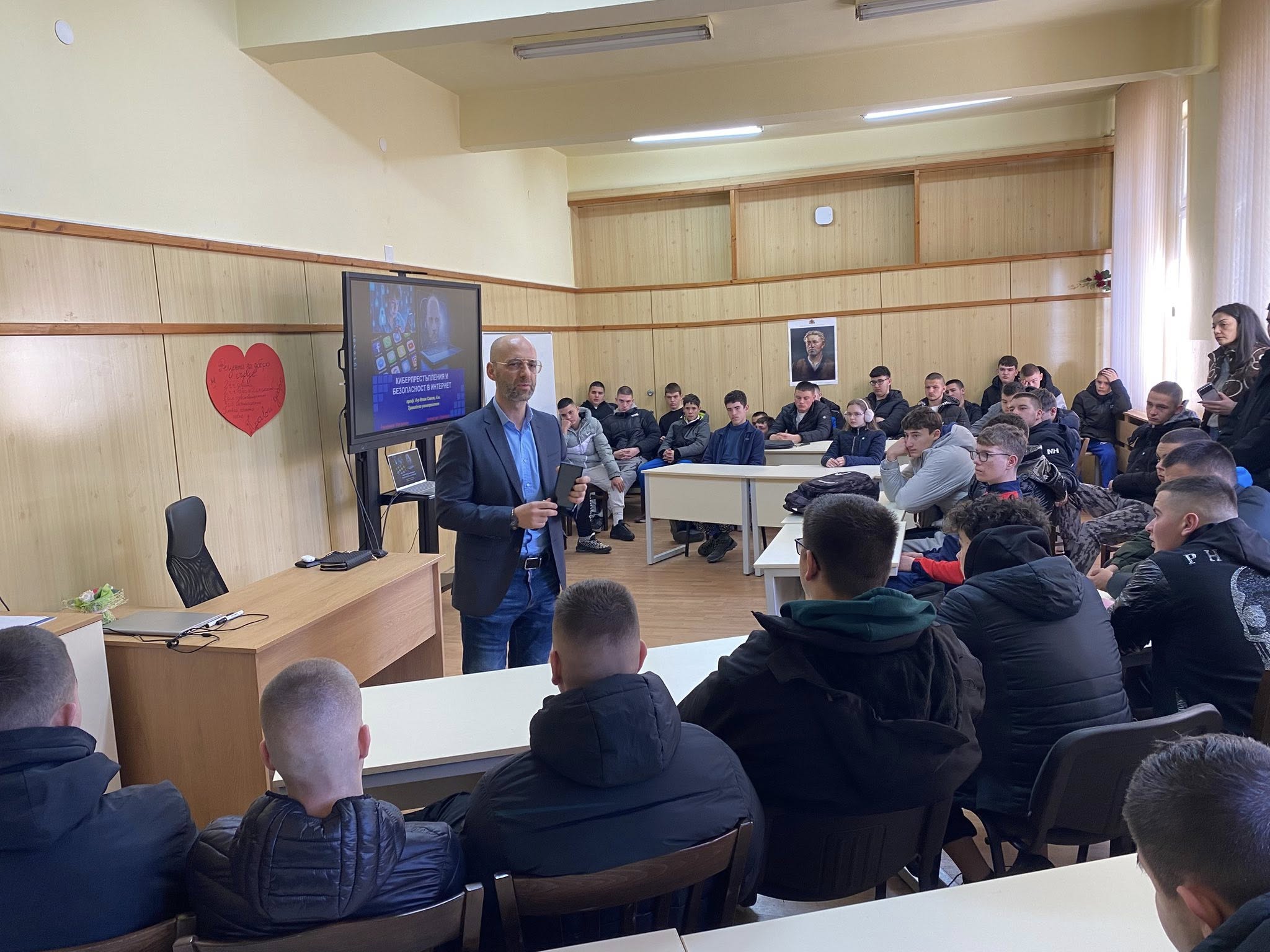 На 27 февруари ученици и преподаватели от Професионалната лесотехническа гимназия „Никола Вапцаров“ в град Банско имаха възможност да участват в изключително полезна, интересна и предизвикателна среща с проф. д-р Илин Савов, д.н. – международен експерт по киберсигурност и киберпревенция с дългогодишен професионален опит в службите на МВР.