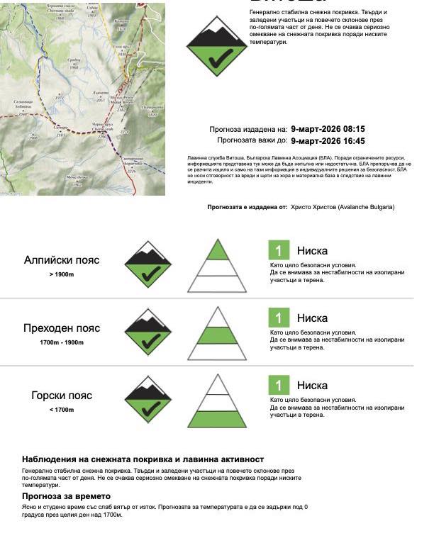Степен на лавинна опасност за 9 март 2026 г.