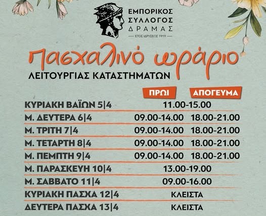Жителите и гостите на гръцкия град Драма ще могат да се възползват от удълженото и специално организирано работно време на търговските обекти в навечерието на Великденските празници.