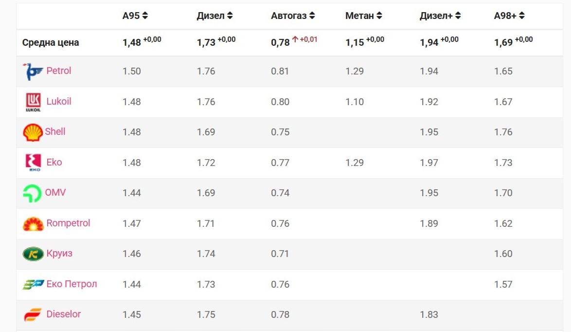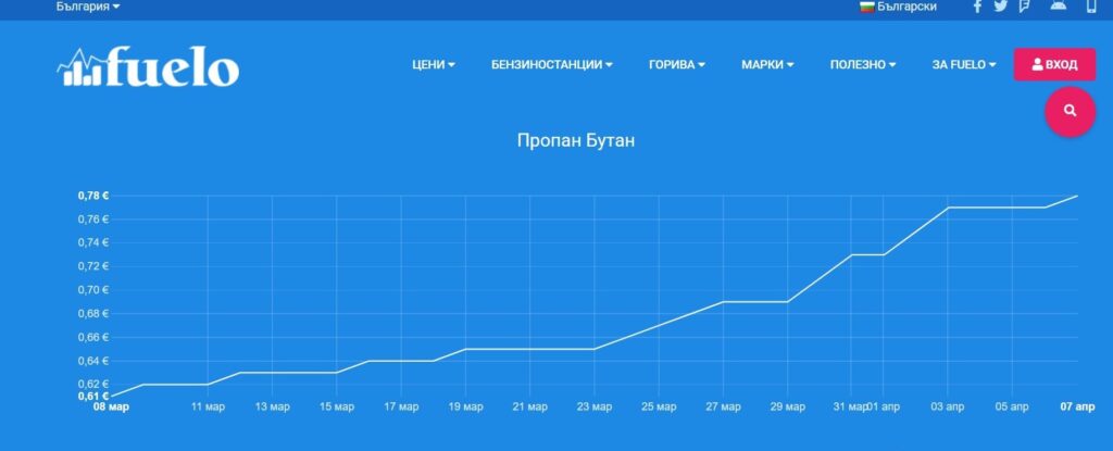 Пропан-бутан+0,17 €/л27,87%рязко поскъпване