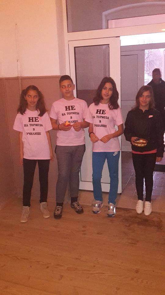 * Учениците от 6 клас закупиха с помощта на родителите си розови фланелки с надпис, осъждащ насилието и тормоза в училище;