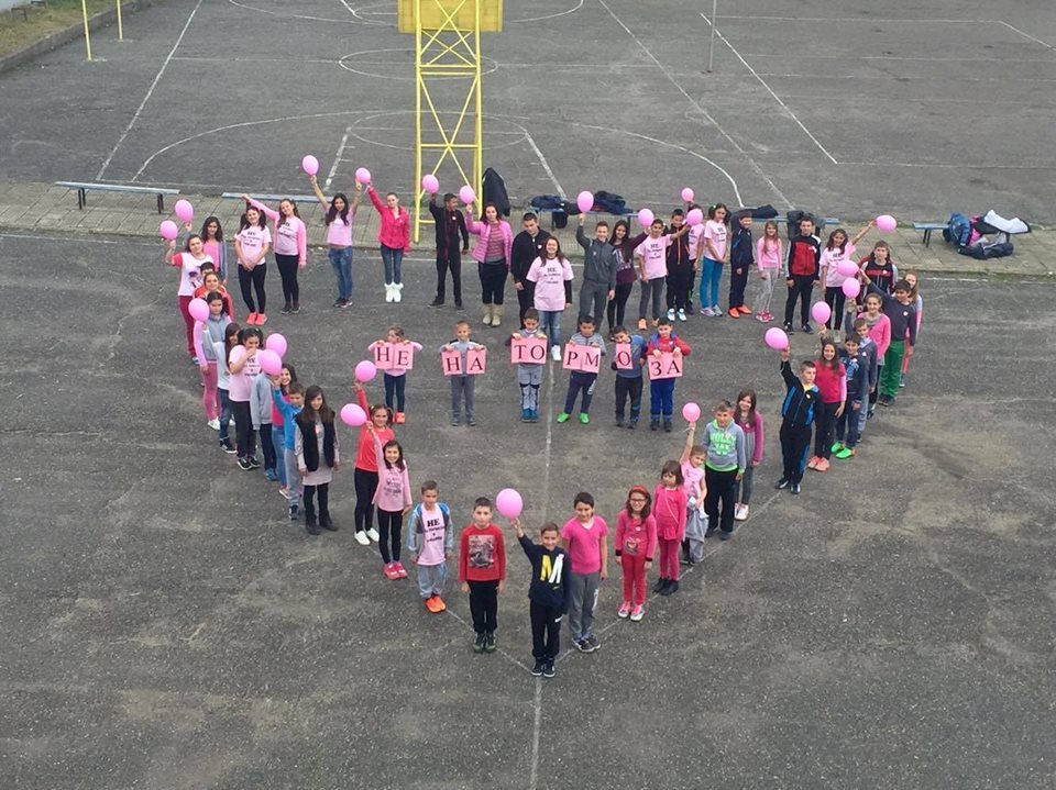 *Учениците от 5,6, 7, 8 класове организираха фотосесия в розово, като оформиха сърце, с ясното послание- да не допуснем тормоза в училище.