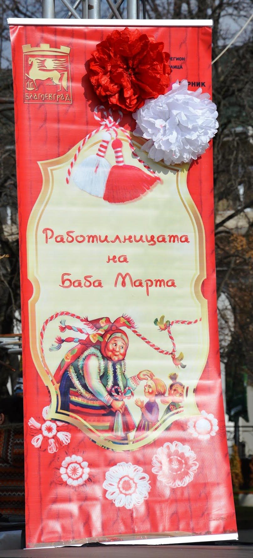 С пристигането си Баба Марта слезе сред малки и големи, които имаха възможност под нейното ръководство да изработят красиви мартеници за своите близки. 4- годишната Елена бе изработила мартеничка, за да я подари на своя баща. „Децата са много сръчни и се справят изключително добре с изработката на мартенички”, похвали малчуганите Антоанета Апостолова, ръководител ателие „Етнография” при Център по изкуствата, като не пропусна и важната помощ на техните родители. Децата на Благоевград добре познават и символът, който мартеничките носят. „Червеният конец е за здравето, а пък белият е за сила”, припомни малката Ани, която направи мартеница за своята баба.