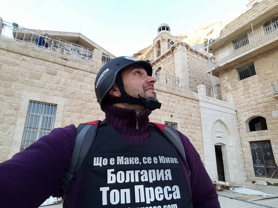 „Днес цял ден обикаляхме крайните квартали на Дамаск потресен сьм от видяната разруха и жестокостта на терористите сьщо така посетихме и древния град Малюля сьс свойте древни християнски светини разрушени и разграбени опожарени купол с исус христос растрелян с автомат. Нямам думи да опиша видяното и случващото се в Сирия