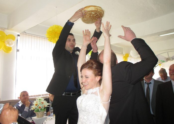 Многобройните сватбари едва се побраха в големия ресторант и наетото за целта второ заведение в селото. Те бяха посрещнати на две смени.