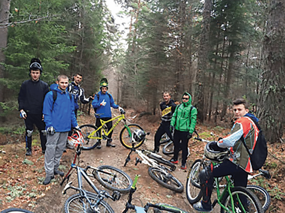 Няма да го увъртам дълго – оказа се, че в града има клуб (все още неформален, но това е най-маловажната подробност), който вече се е захванал да прави трасе за спускане над града, а освен това карат редовно и по други пътеки и маршрути в района. Повече за клуба и техните начинания можете да научите във Facebook на адрес: https://www. facebook.com/Downhill- Freeride-Goce- Delchev- 1611274575787359/. Една от последните новости е, че смятат да си оборудват малка работилница. Показателно е и това, че всичко е започнало преди две години като инициатива на 3-4 човека, а в момента членовете на клуба вече са около десет и всички работят здраво за идеята и карат кой колкото може.