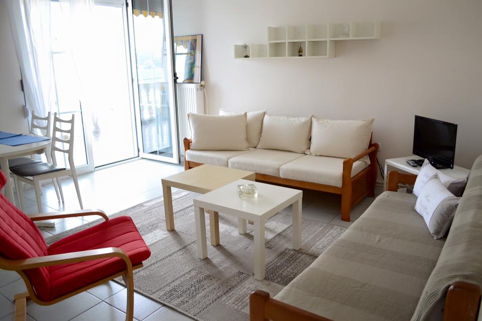Етаж от къща в центъра на Неа Ираклица, с хол, кухня и две спални. Възможност за настаняване до 5 човека. Цена на вечер 60 евро.