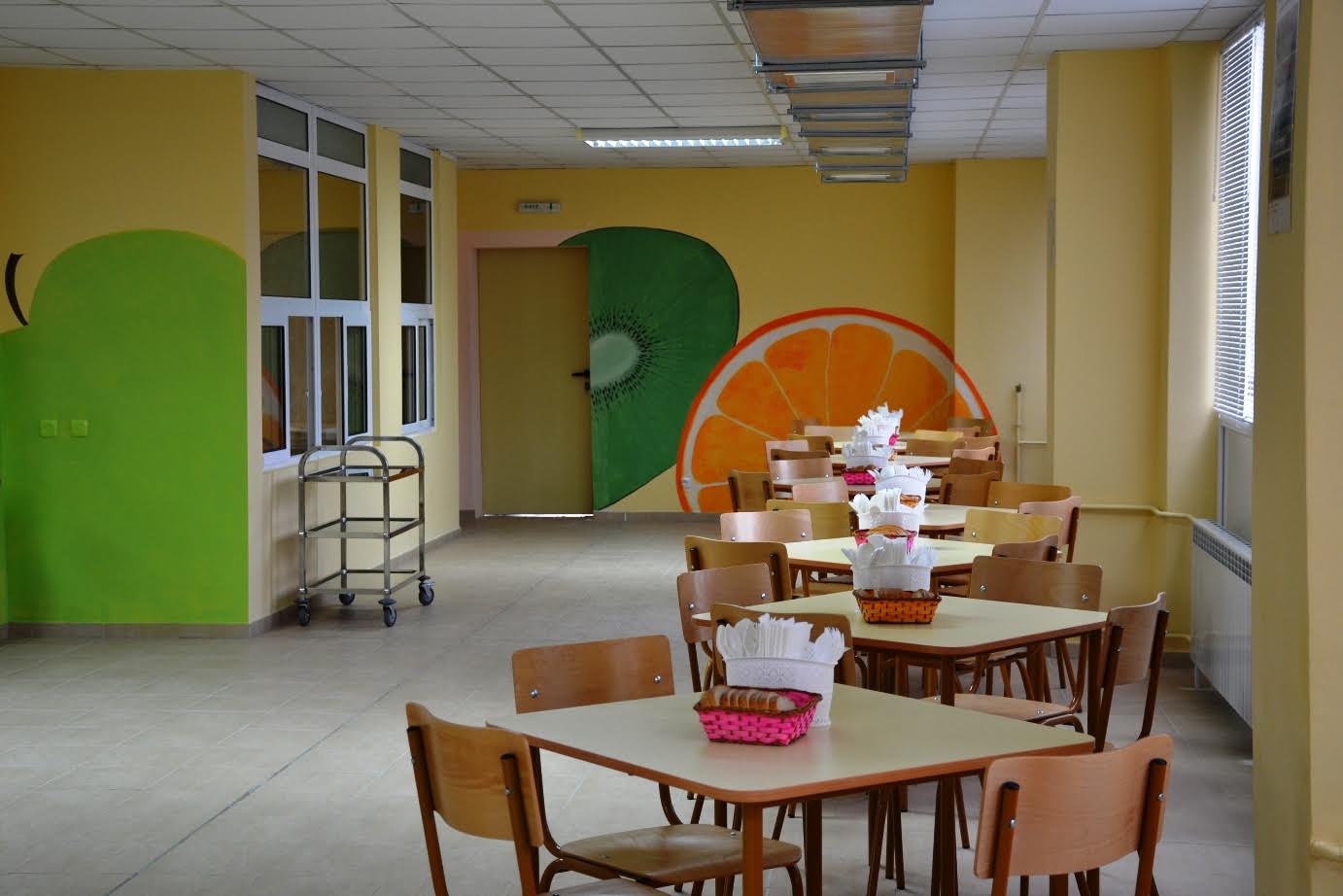 Храната ще се приготвяна в кухня-майка и ще се  доставя при специални условия. Новата разливна кухня е съобразена с нуждите на целодневното обучение в училището. Достъпът до хранителния блок се осъществява от фоайе, разположено до училищния коридор на първия етаж. Предвиден е и самостоятелен вход към хранителния комплекс откъм училищния двор.