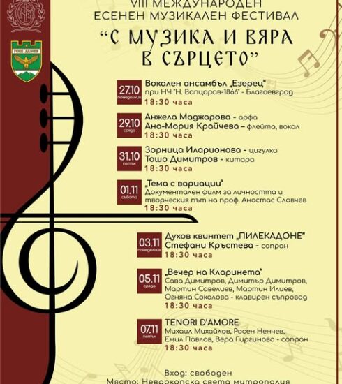 Продължава програмата на Международния есенен музикален фестивал „С музика и вяра в сърцето“, който се организира от Неврокопска света...