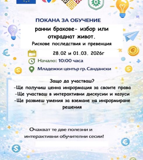 Младежки център Сандански организира двудневно обучение и дискусия на тема „Ранни бракове – избор или откраднат живот?“, посветено на...