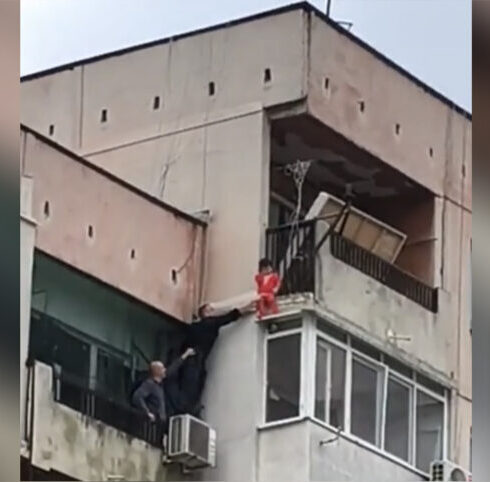 БРУТАЛНА РОДИТЕЛСКА НЕБРЕЖНОСТ: 3-годишно дете увисна от 8-ия етаж в Ямбол, полицаи го спасиха (ВИДЕО)