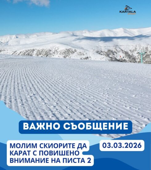 На 03.03.2026 г. от ръководството на Ski Park Kartala отправиха апел към всички посетители да се движат внимателно по...