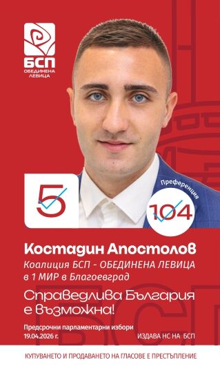 Костадин Апостолов, кандидат за народен представител: „БСП – Обединена левица“ е единствената лява партия която защитава интересите на работещите български граждани