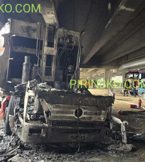 Огнен инцидент в базата на „Биострой“ в Благоевград- камион изгоря под АМ „Струма“