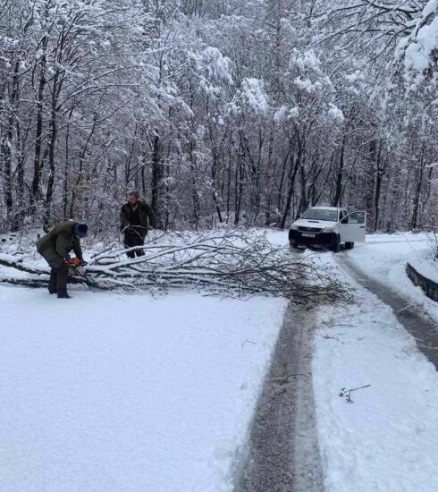 Тежък мокър сняг повали клони по пътя към ски пистите на Картала, което затрудни движението тази сутрин. Служители на...